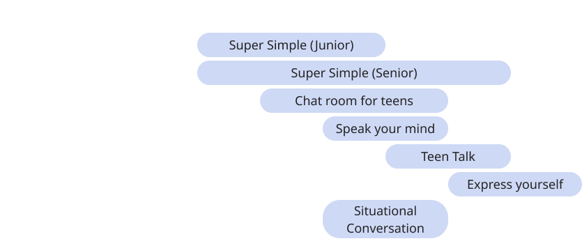 10대들의 생각, 상상력 등 실제 관심사들에 대한 주제로 권당 500개 이상의 질문을 이용하여 대화를 통해 회화 실력을 자연스럽게 향상시키는 과정입니다. 프리토킹에 목마른 학생들에게 강력 추천하며, 대화를 하다보면 자연스레 늘어나는 어휘력과 스피킹 실력을 느끼실 수 있습니다.