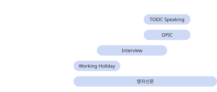 다양한 주제들로 회화 및 토론 연습을 할 수 있는 과정입니다. 주제에서 파생되는 질문들에 대한 답을 말하며 실전에서 어떤 주제가 나오더라도 대답할 수 있는 훈련을 합니다. 어느정도 기본기가 준비된 수강생에게 추천드리는 과정입니다.